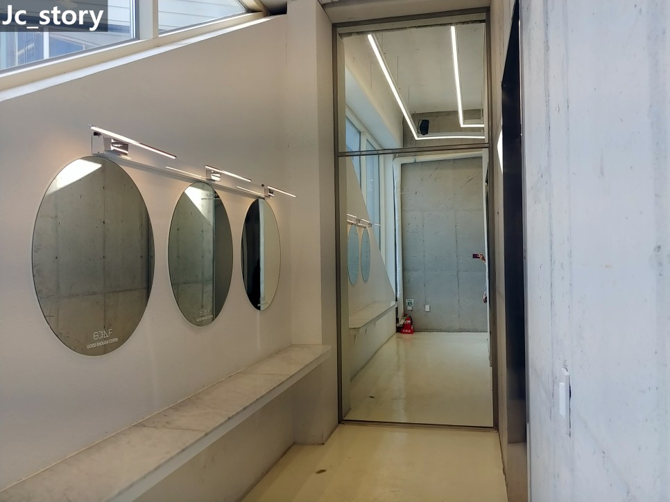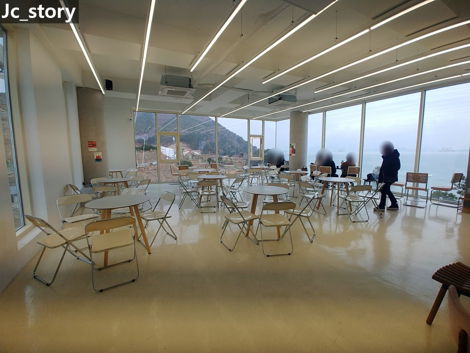 건물 창가자리 앉은 사람들에게는 다 보이는.