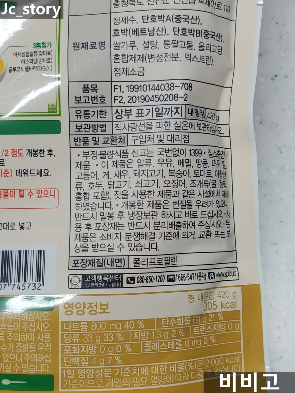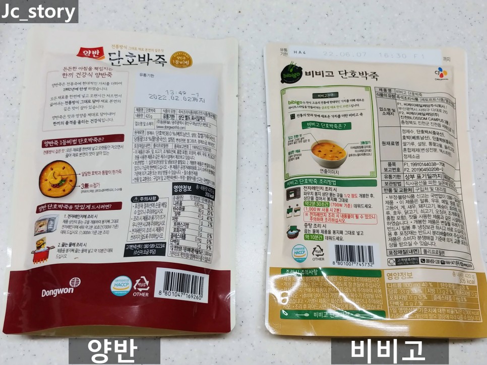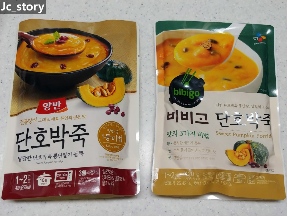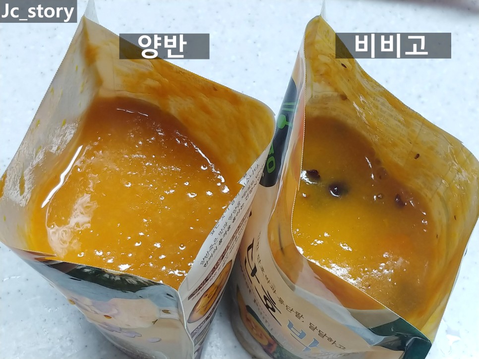 '양반 단호박죽'의 첫 맛은 비비고에 비해