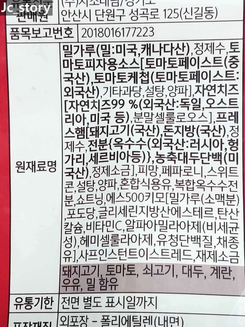 치즈, 햄, 피망, 페파로니, 스위트콘, 양파 등의