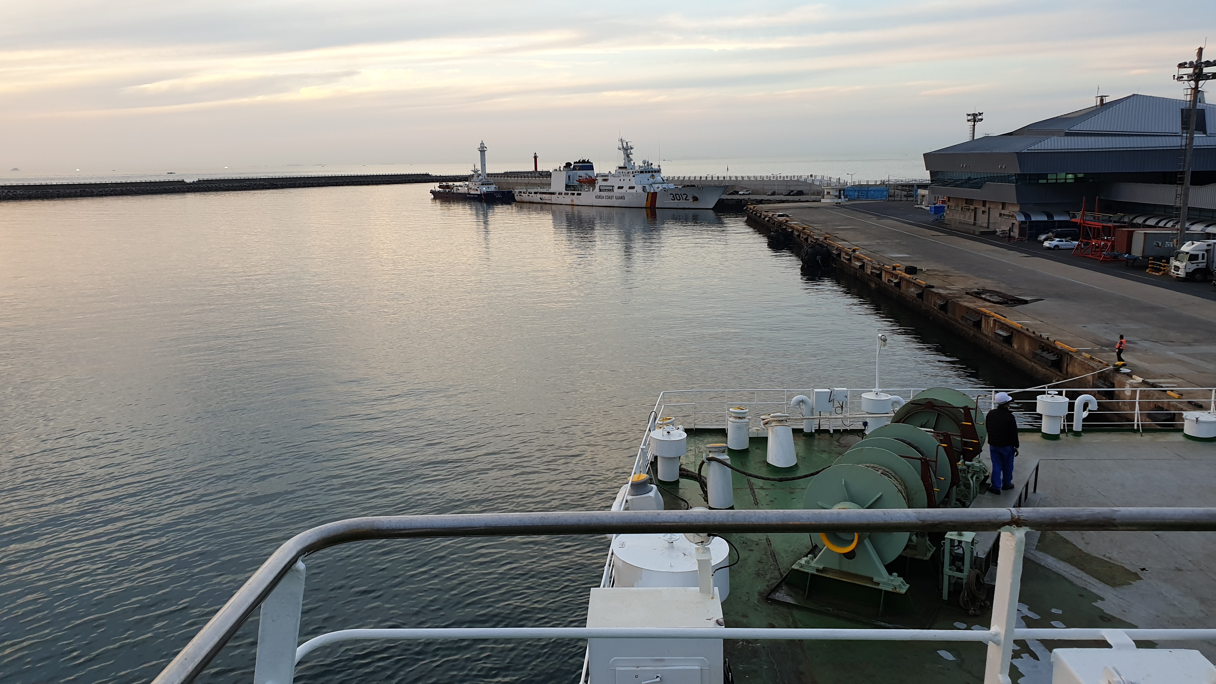 남편과 같이 여객터미널로 천천히 걸어가는데