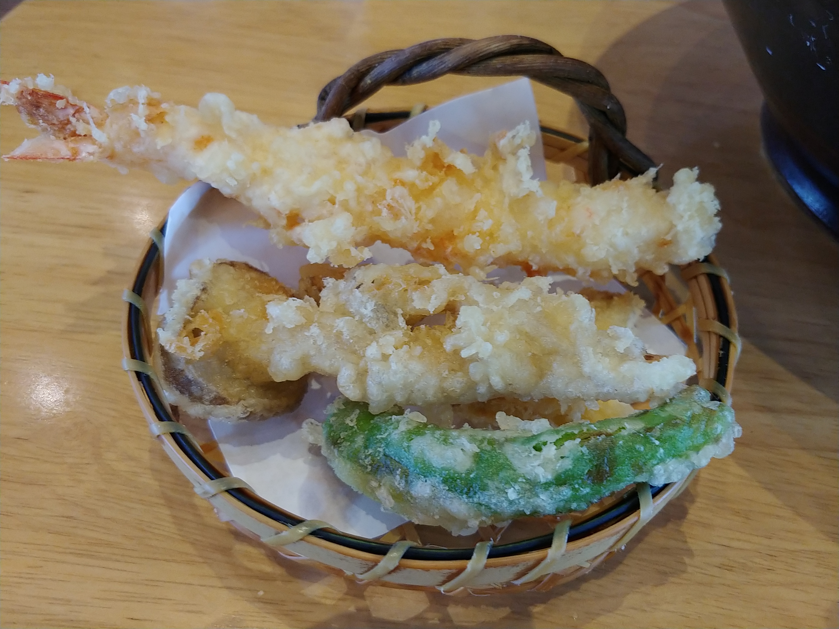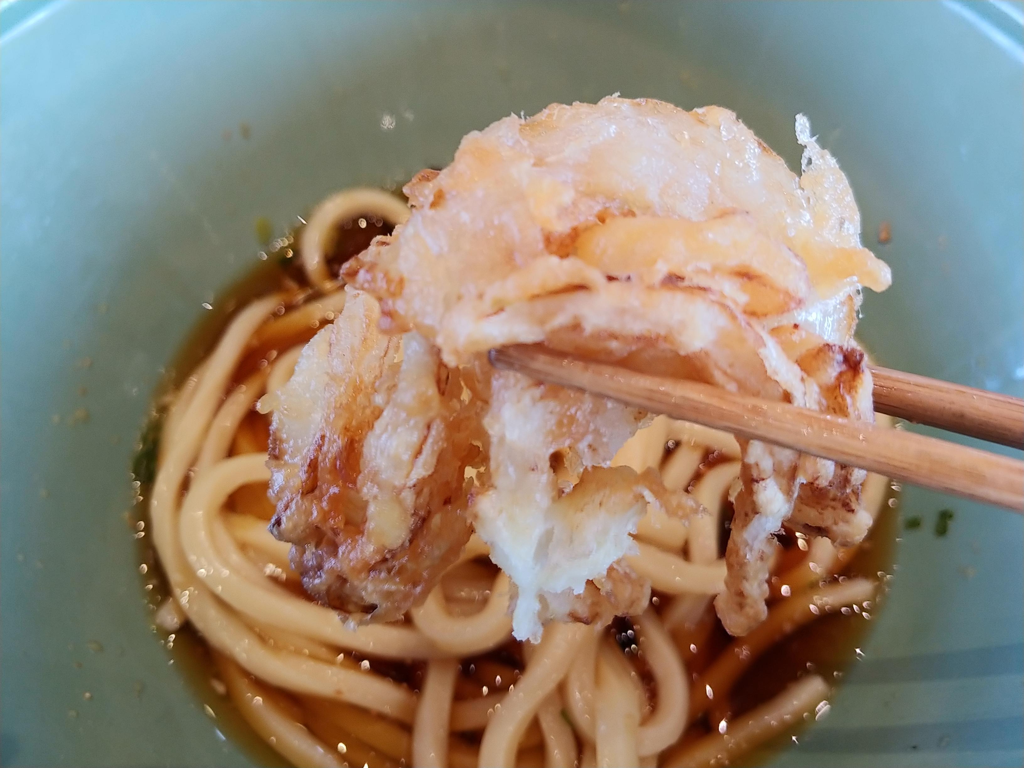 덴뿌라 우동과 카키아게 붓카게 우동.