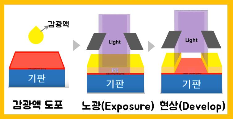 ※ 웨이퍼 표면에 바르는 감광액의 경우 자외선에 대한 감도가 높아야 고품질의 미세한 회로 패턴을 얻을 수 있음