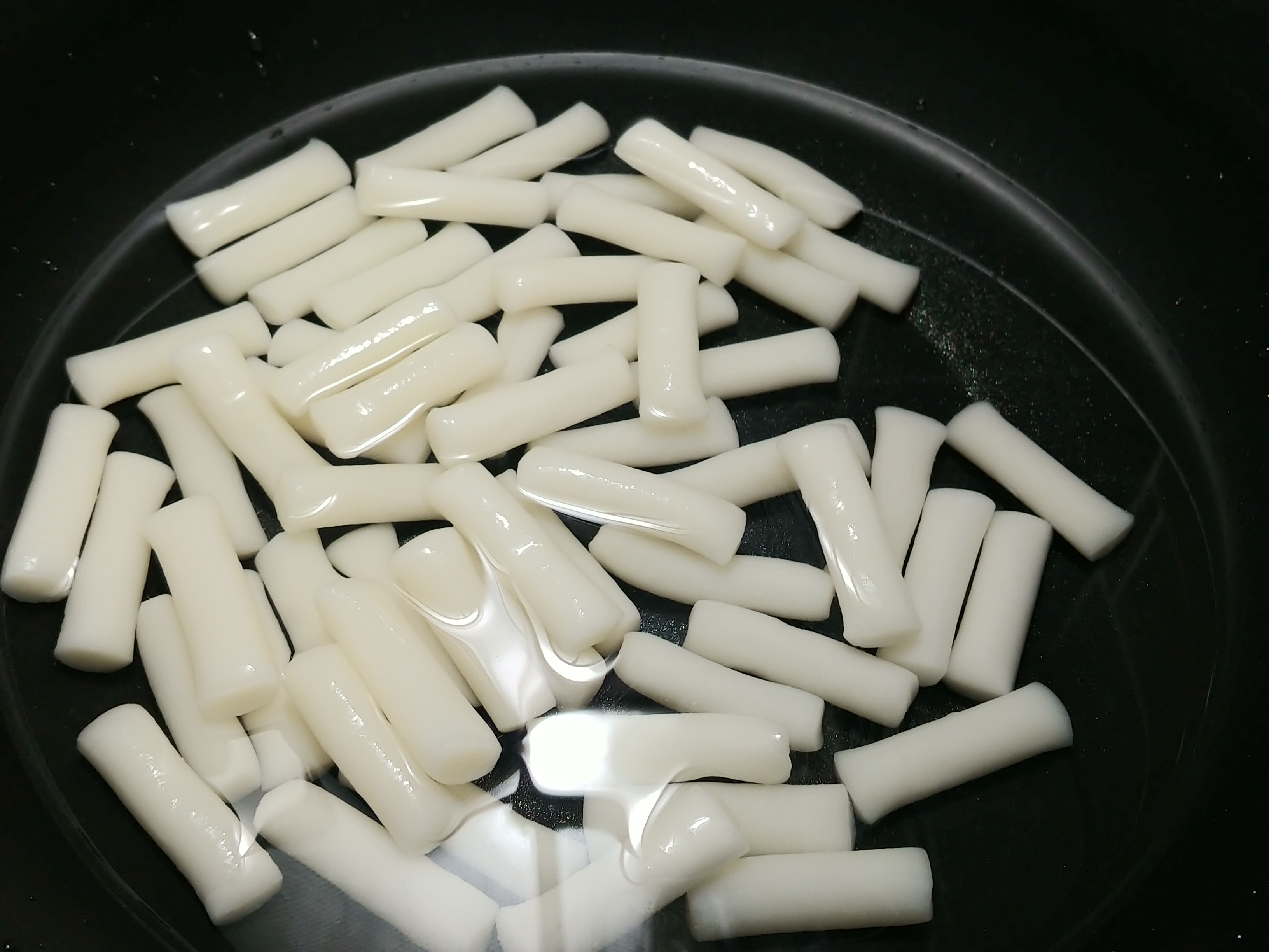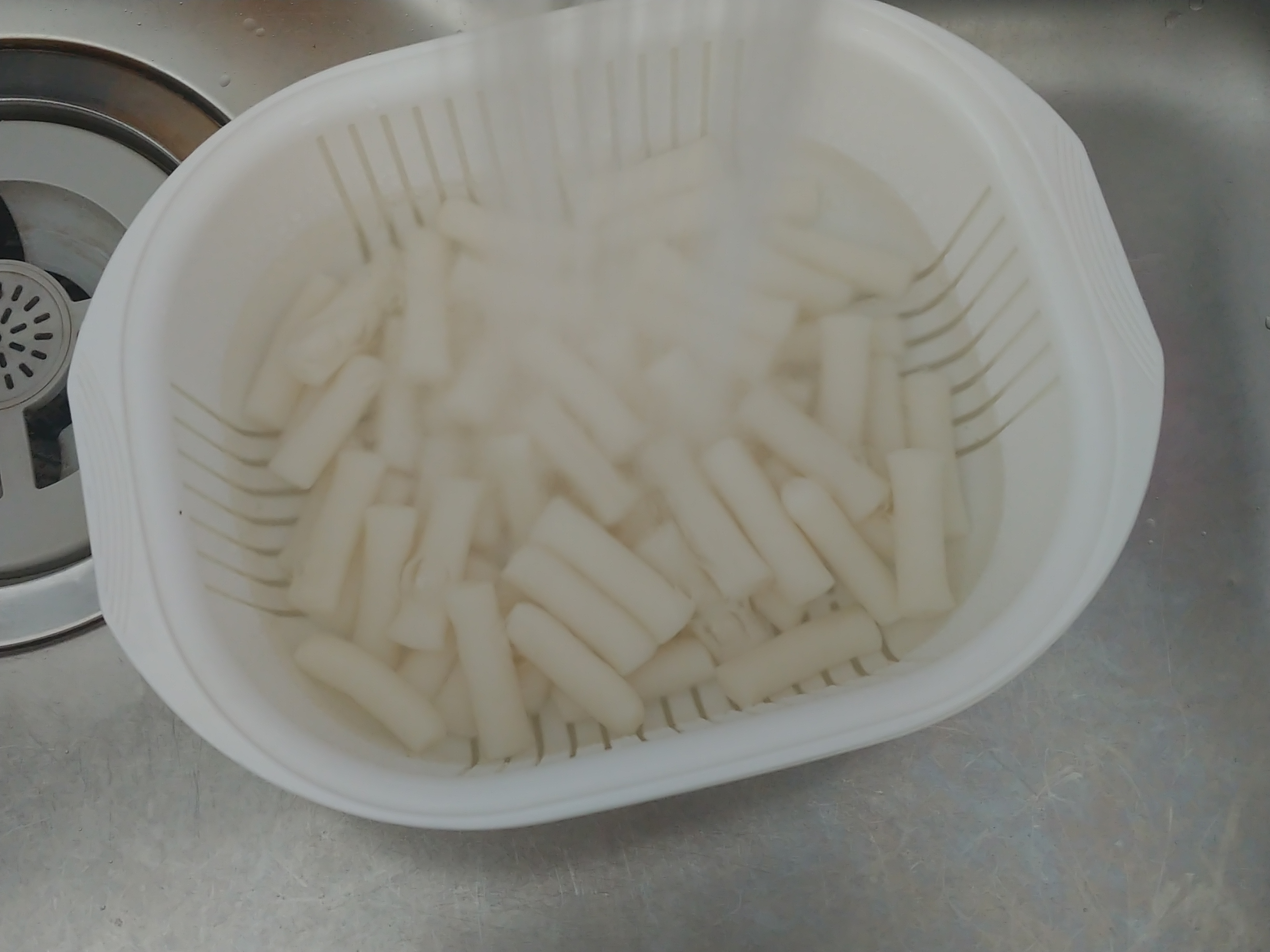 1) 떡 300g(2인분)을 물에 헹구어 건져내기.