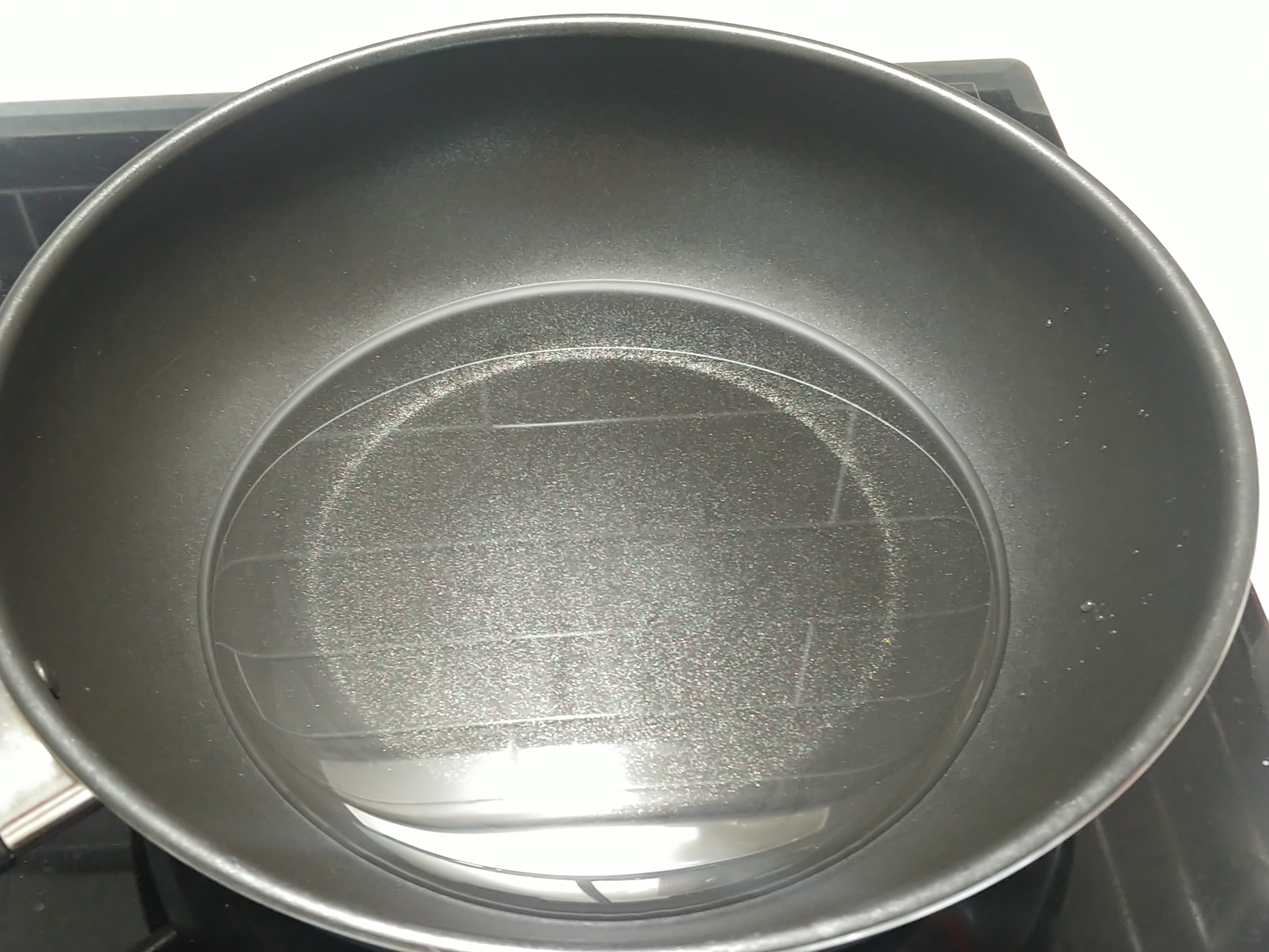 2) 웍(궁중팬)에 물 400cc(종이컵 약 2컵 반) 넣기.