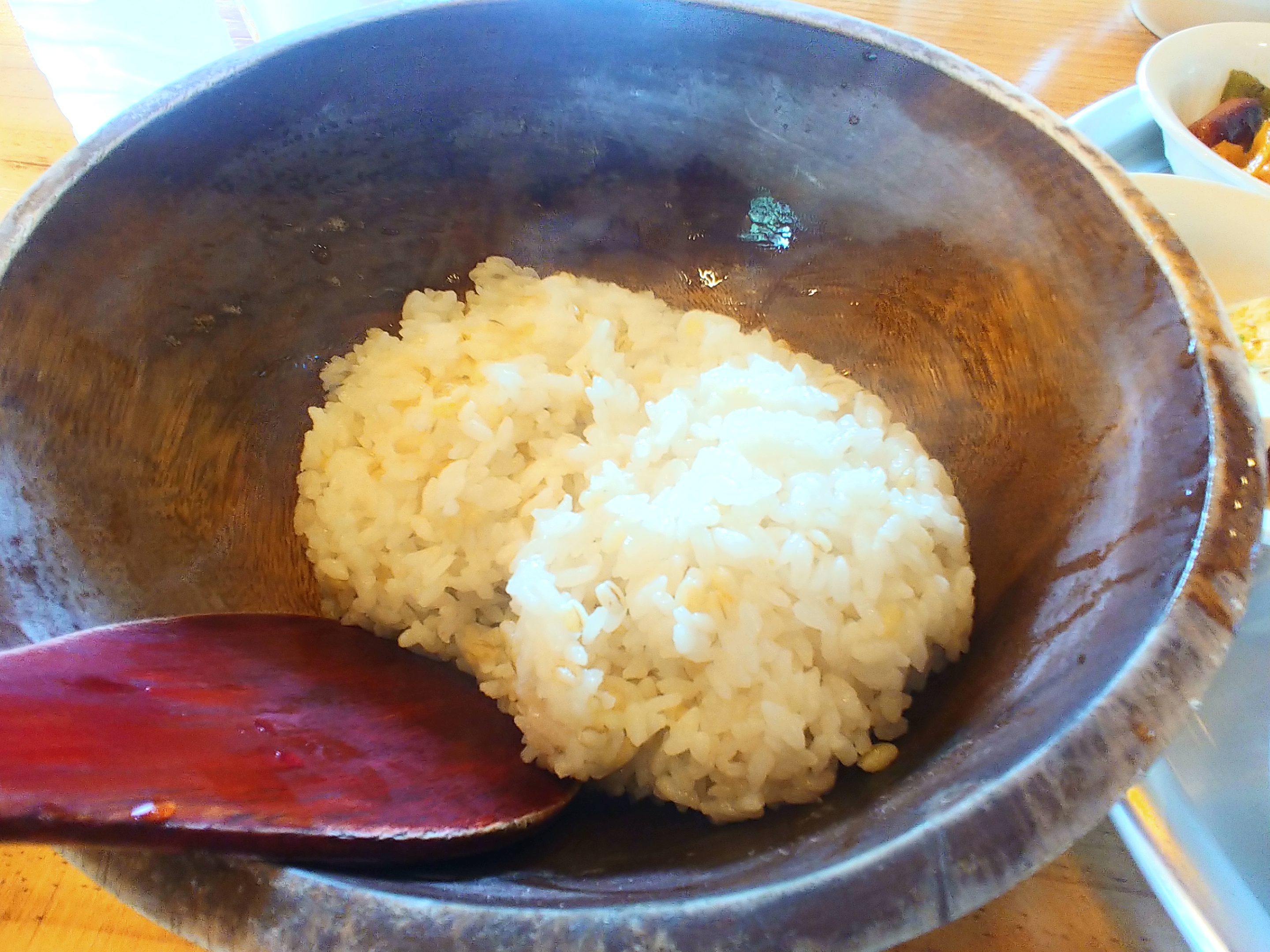 큰 나무 그릇에 담겨져 나와