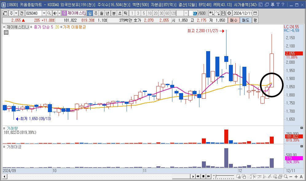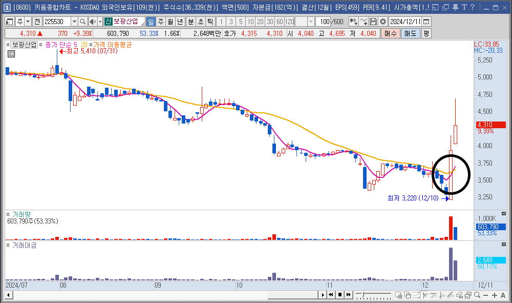 ㆍ 주가등락률에 비해 거래량 부족하지만 전일 52주 신고 거래량이었음
