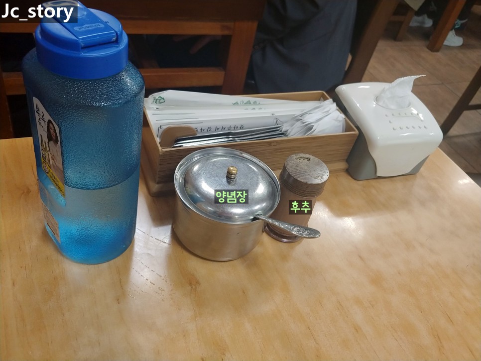 그 외는 물, 수저, 휴지 등 기본적인 것들이 셋팅되어 있네요.
