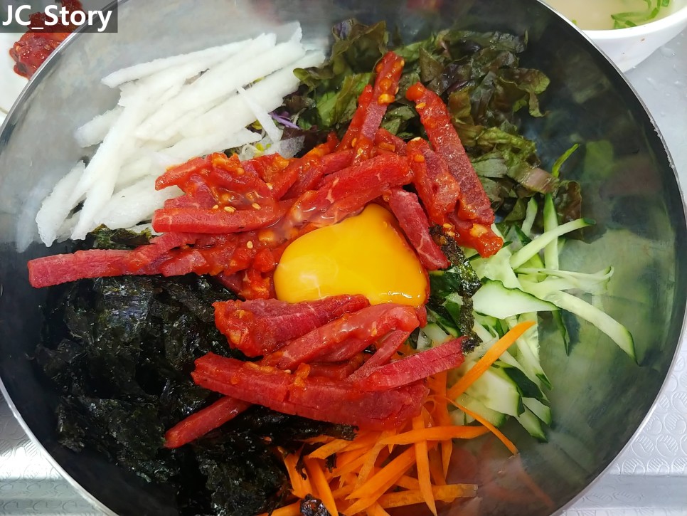 주메뉴가 탕 종류이다 보니 아무래도 더운 여름에는 많은 사람들이 방문을 크게 하지 않게 되다보니 비빔밥을 추가로 구성한 게 아닌가 싶습니다.