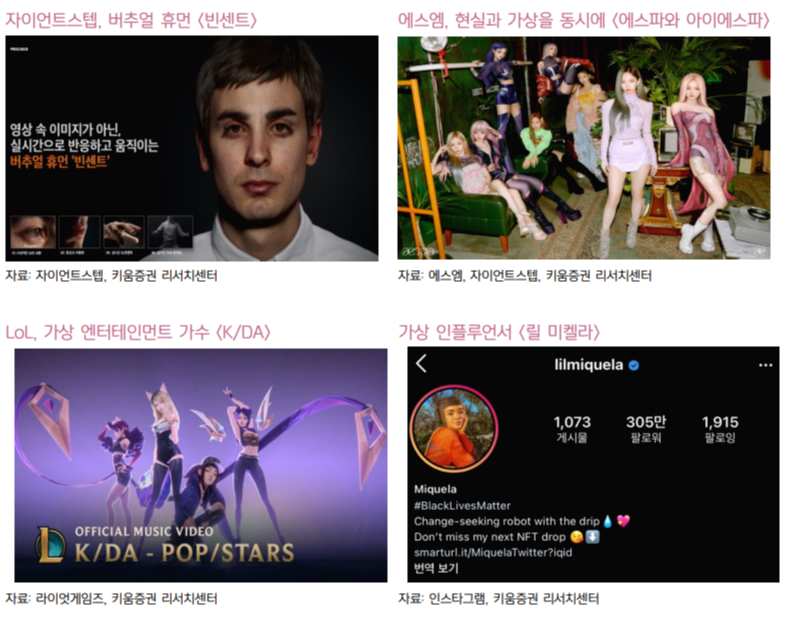- 버추얼 휴먼은 메타버스에서의 셀럽 역할을 담당할 것으로 전망
