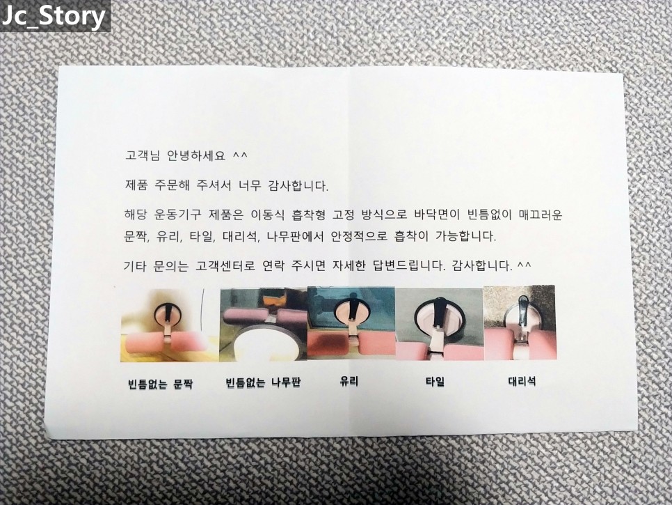 바닥 흡착이 안된다는 후기가 많아서 그랬는지 제품 발송 시 이런 안내문을 같이 첨부해 놓았더라고요.