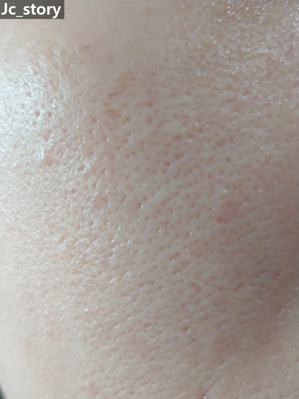 많은 변화는 아니지만 미세하게나마 촉촉한 느낌 그리고 모공이 살짝 조인 느낌을 눈으로 확인해 볼 수 있을 것 같아요.