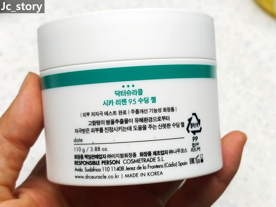 알로에 수딩젤과 다른 점이 있다면 닥터슈라클 수딩젤은 조금 더 쫀쫀함이 있지 않을까 싶어요.