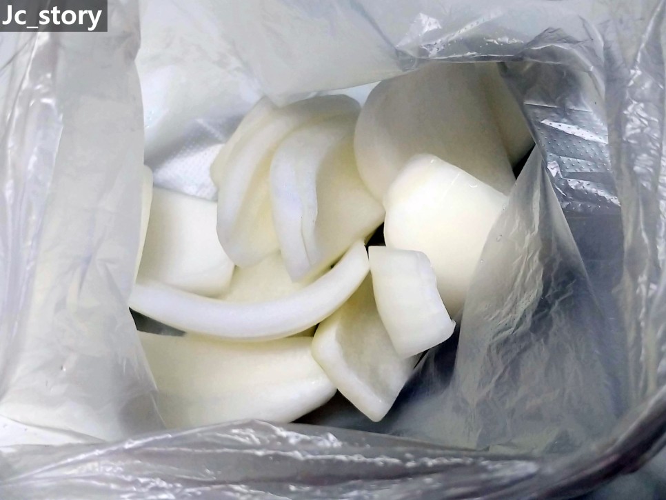 한동안 코로나로 인해 장사가 잘 안되었던지 지난 번에 갔을 때 깍두기가 너무 익어 물러질대로 물러져 먹기가 좀 그래서 잘 못 먹었던 기억이 있었는데 이번에는 다행이 서걱서걱한게 먹기 딱 좋게 익은 걸로 챙겨 주셨더라구요.