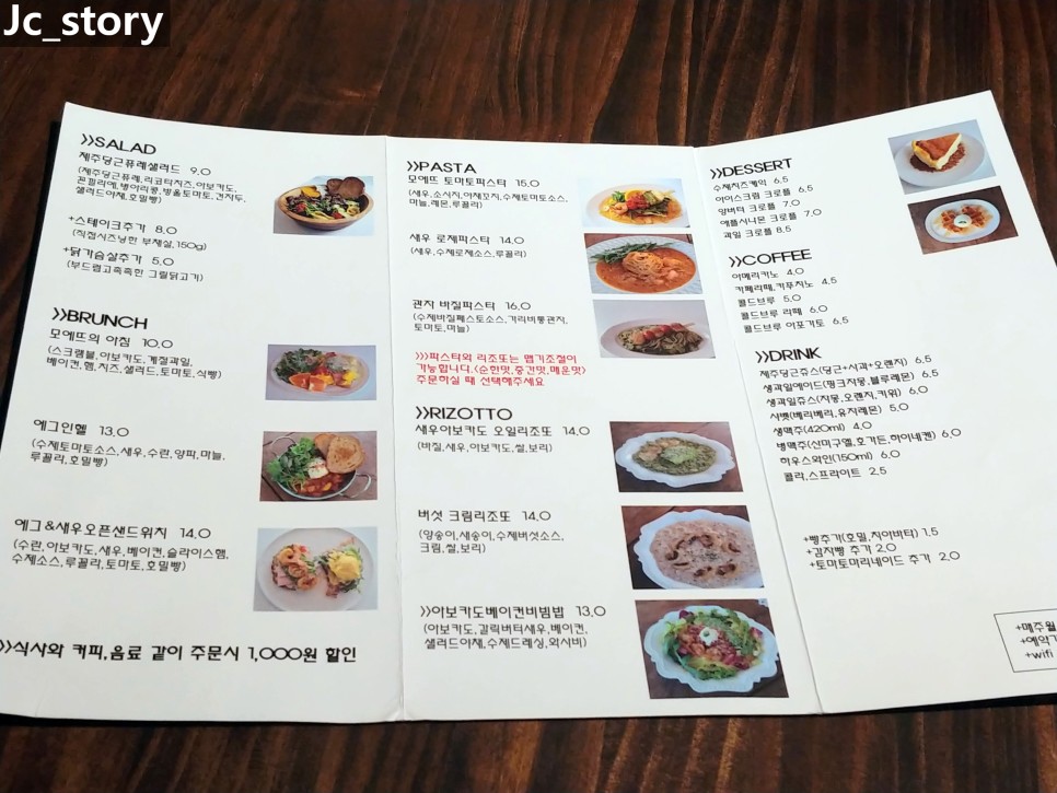 크게 샐러드, 브런치, 파스타, 리조또, 디저트, 음료 등으로 나뉘는데요.