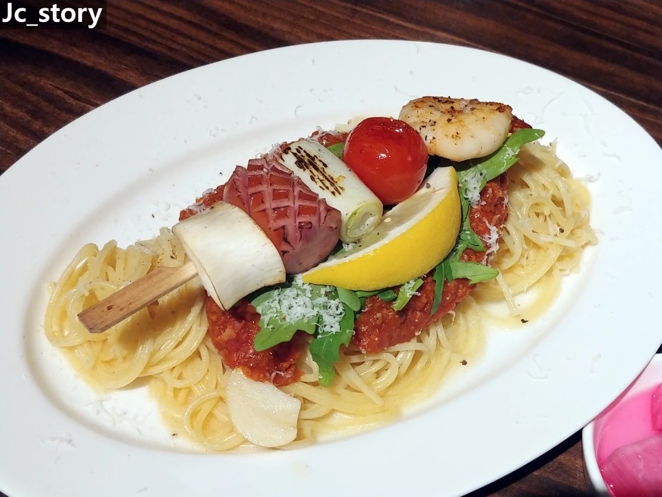 바질 향의 날 것이 그대로 묻어 나게끔 크림을 추가하지 않은 느낌이어서 바질의 참 맛을 느낄 수 있었던 파스타였어요.
