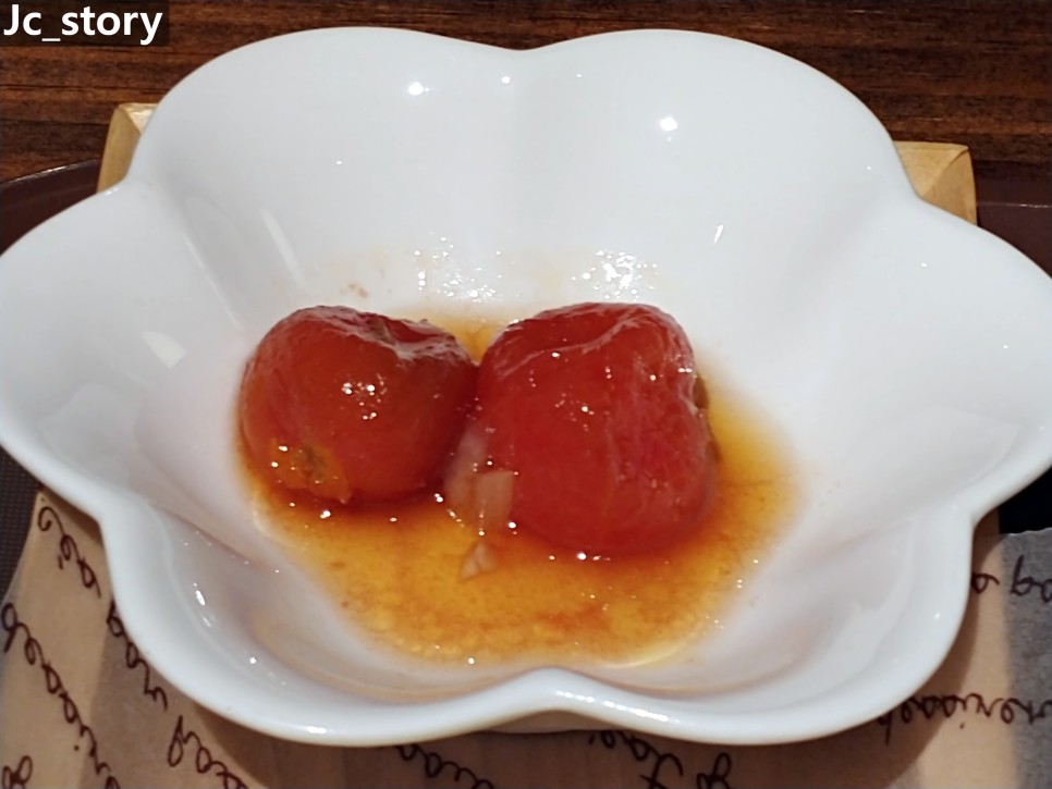 주문하고 나면 식전 빵과 귀여운 방울 토마토가 나옵니다.