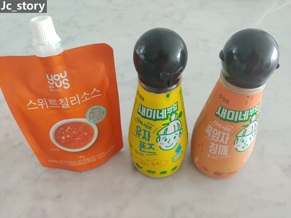 포장 구매로 하다 보니 소스가 늘 부족한 느낌을 받아서 요즘 마트를 가면 간혹 샤브샤브 소스를 하나씩 사서 먹어 보게되는 습관(?)이 생겼습니다.