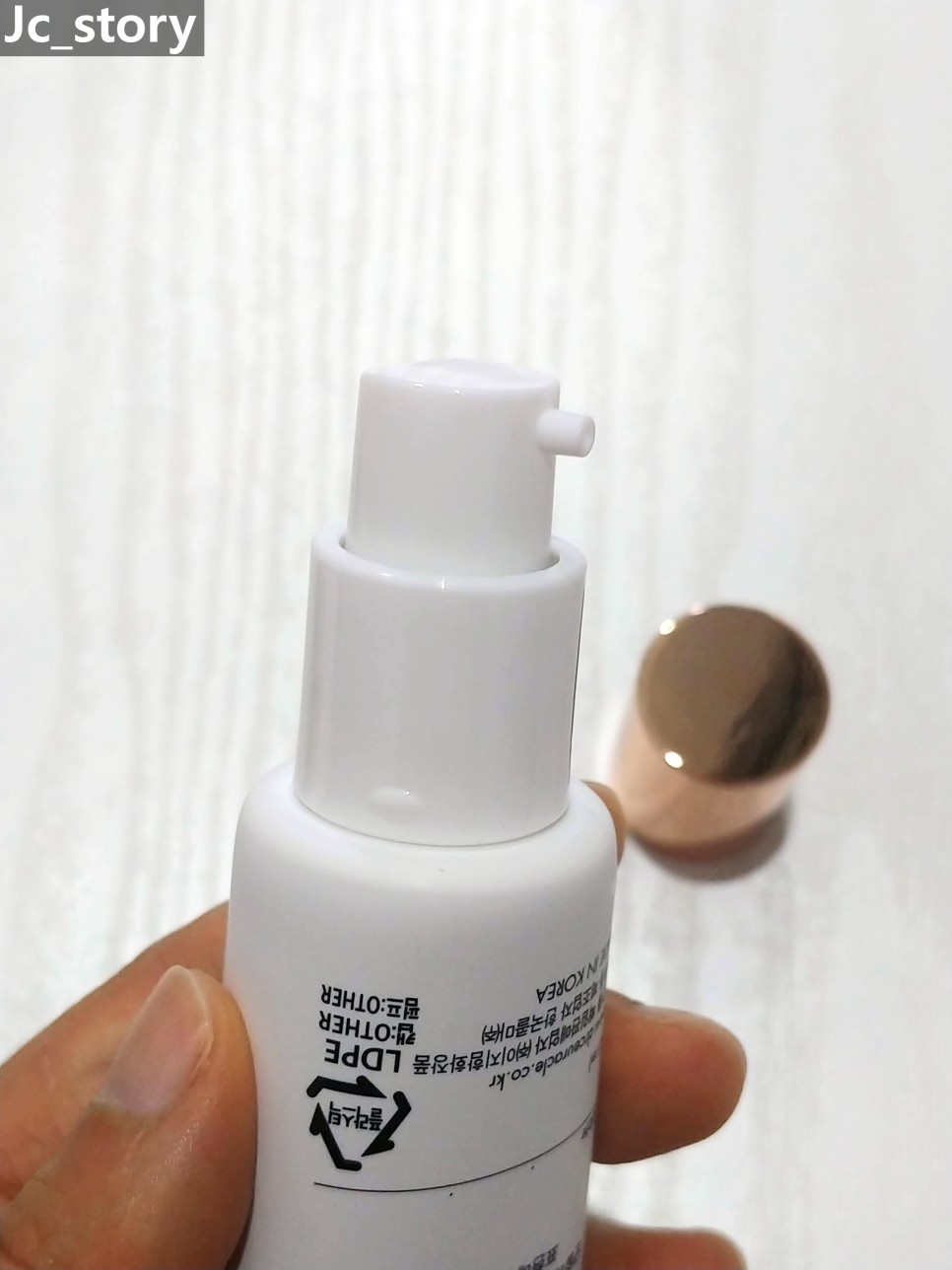 골드색 캡 을 오픈하면 화이트 색상의 펌프식 입구를 볼 수 있는데요.