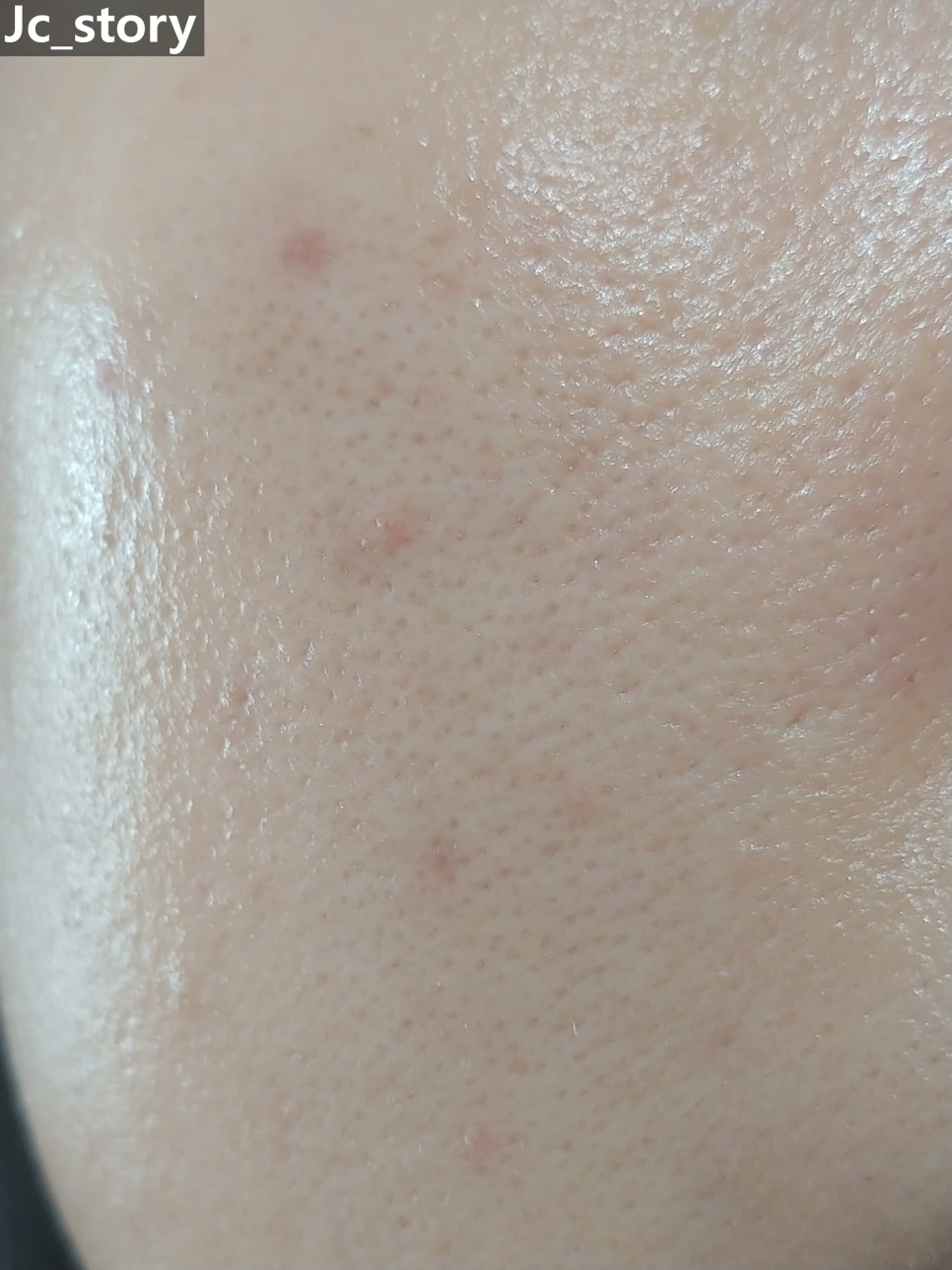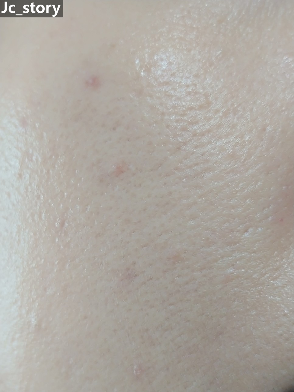 좌측은 기초케어를 한 피부 상태이고, 우측은 리커버리 밤을 바른 후의 피부 상태입니다.