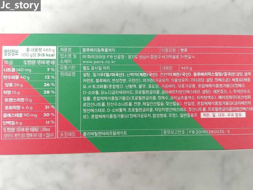오늘은 파리바게뜨에서 판매 중인 '블루베리듬뿍롤케익'에 대한 리뷰입니다.