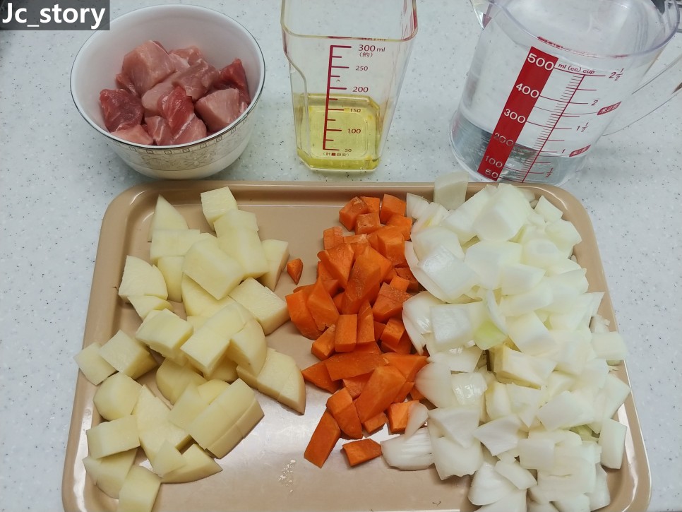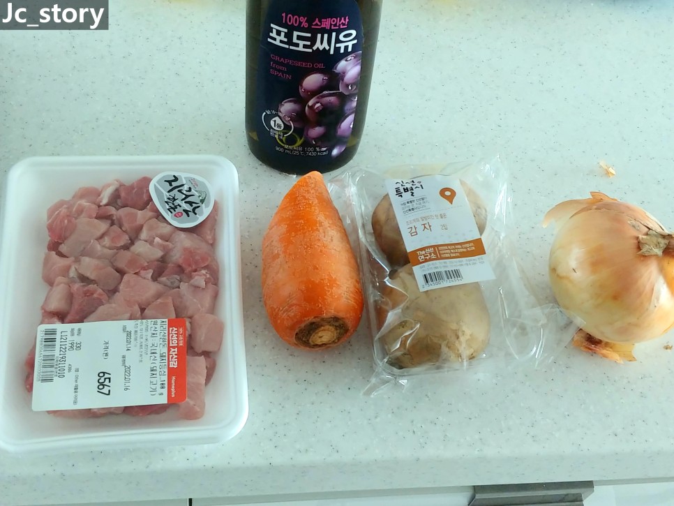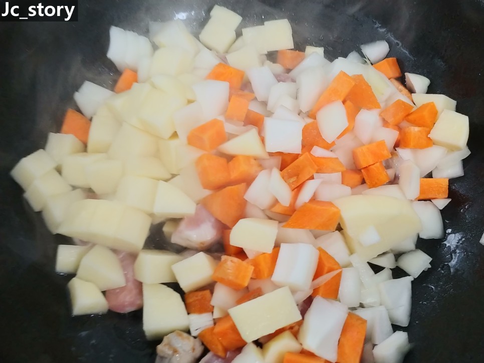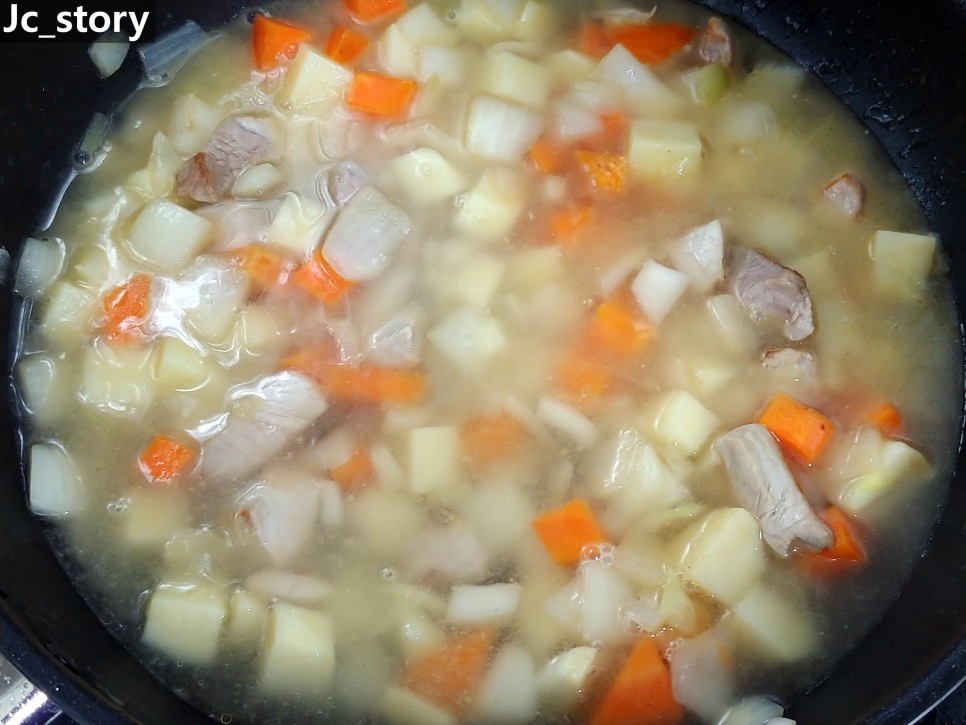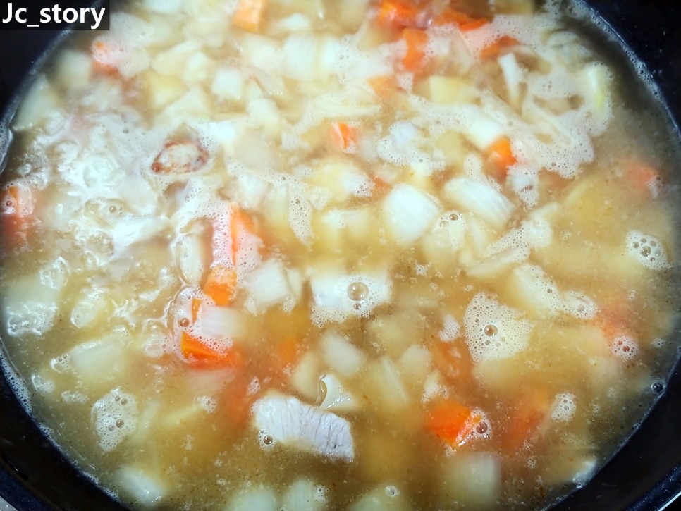 양파 240g, 감자 160g, 당근 100g 넣고