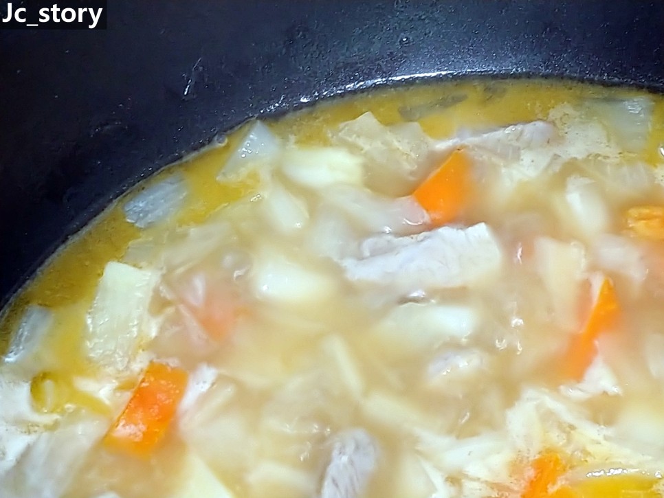 중불로 줄여서 재료가 완전히 익을 때까지 끓이기.