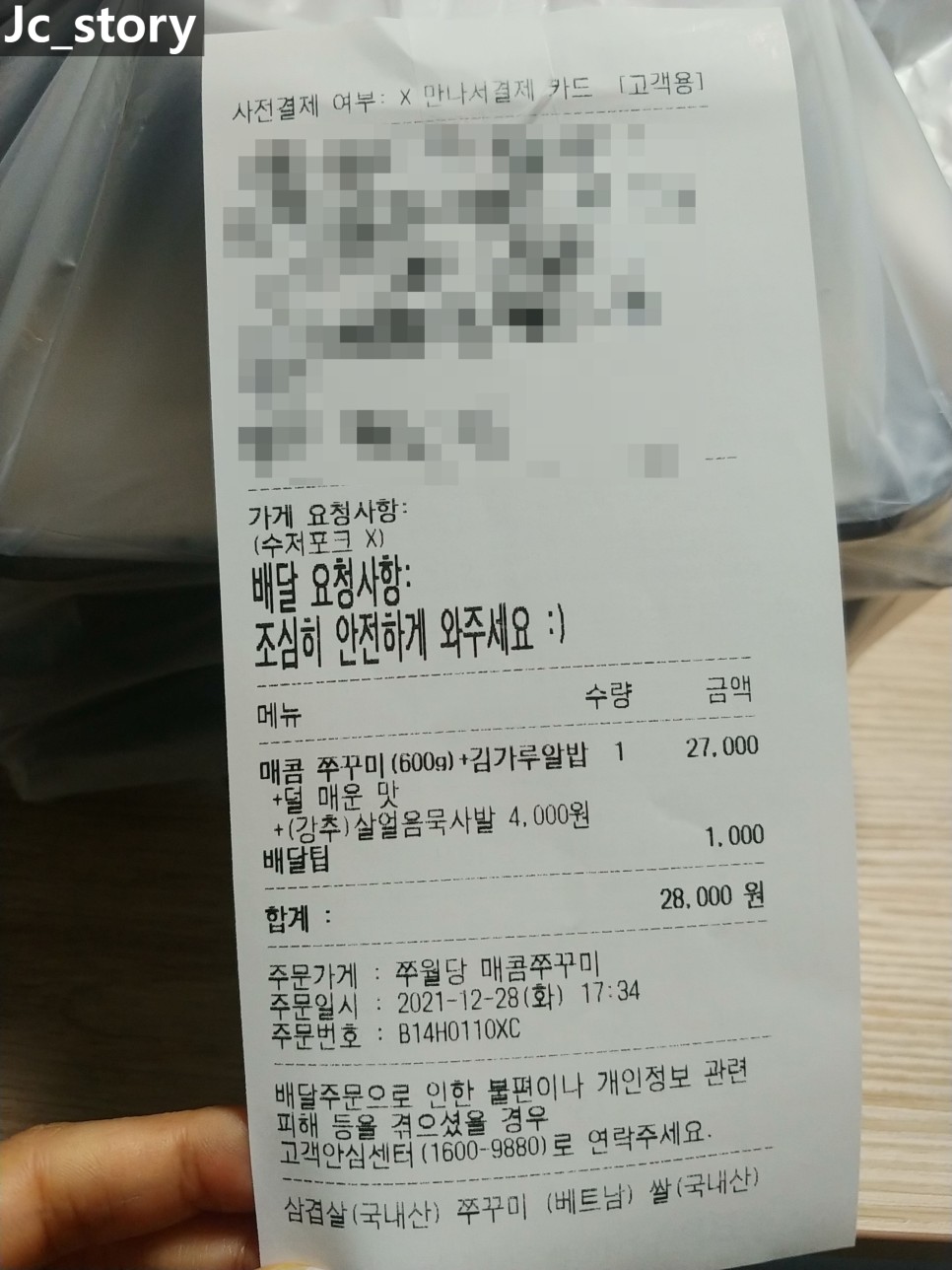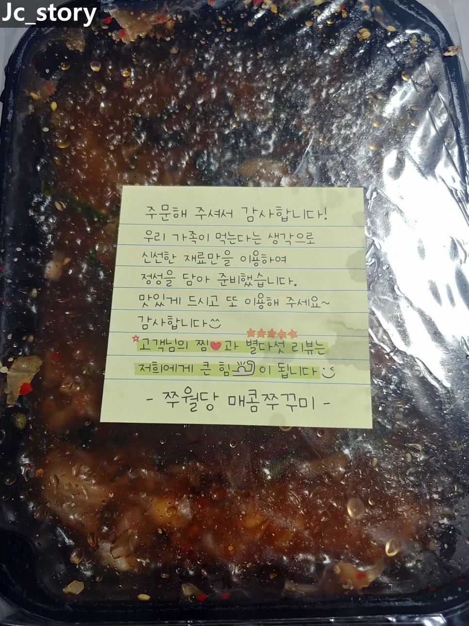 '쭈월당'의 매콤 쭈꾸미 배달 후기입니다.