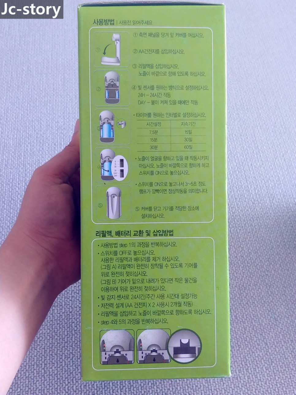 설명서에는 주간 사용시간 대에만