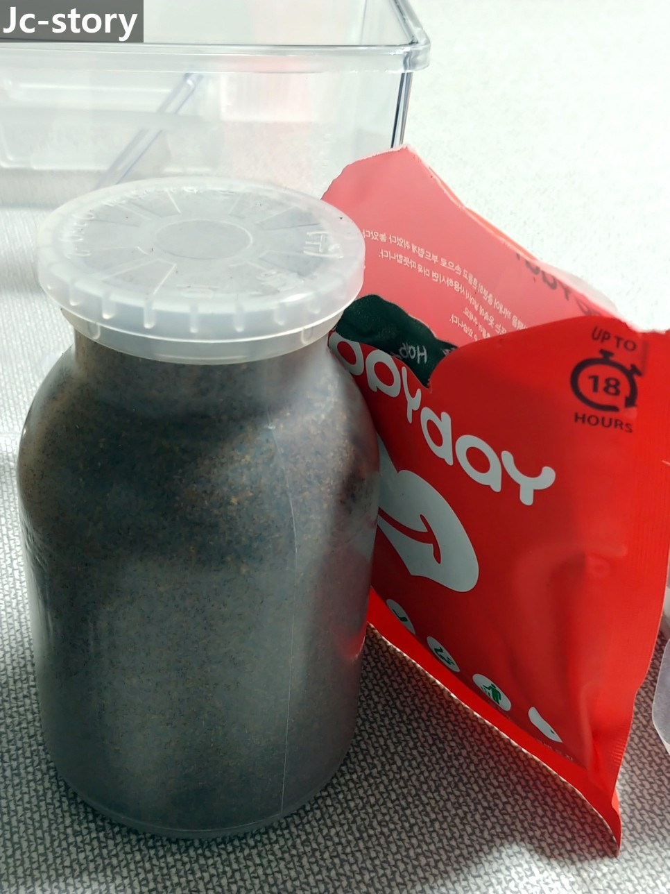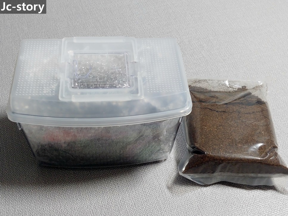 우선 채집통에 발효톱밥 1봉지를 모두 부어 주고,
